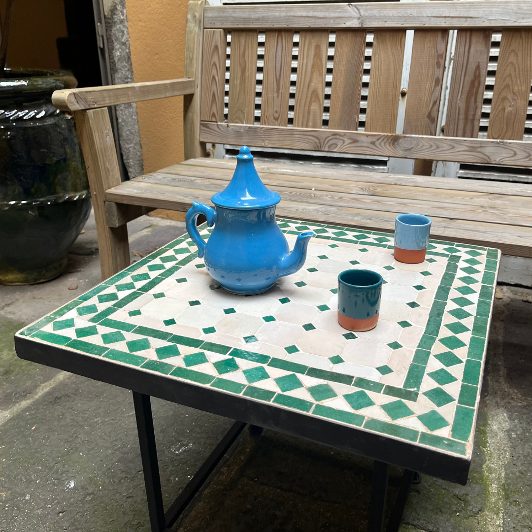 Fabrication : Réalisées à 100 % de manière artisanale au Maroc, ces théières sont modelées et peintes à la main, puis émaillées pour obtenir une surface lisse, brillante et durable.